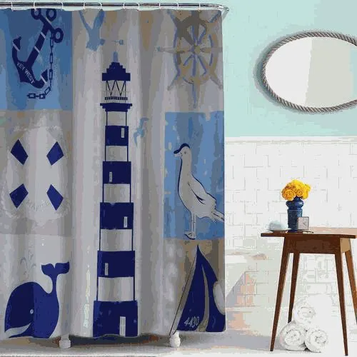 Шторка для ванной тканевая 180х180см "Маяк" MELODIA MZ-63 - это водонепроницаемая занавеска для ванной комнаты с 12 люверсами из нержавеющей стали и с утяжеляющей лентой, не позволяющей занавеске мяться. Упакована в мешок с ручками в цвет шторы. Высота шторки 180см, ширина шторки 180см. Стирка при температуре до +40° С.brbr# занавеска для ванны # штора # мелодия