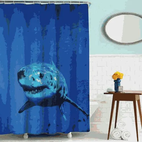Шторка для ванной тканевая 180х200см "Акула" MELODIA MZ-44 - это водонепроницаемая занавеска для ванной комнаты с 12 люверсами из нержавеющей стали и с утяжеляющей лентой, не позволяющей занавеске мяться. Упакована в мешок с ручками в цвет шторы. Высота шторки 200см, ширина шторки 180см. Стирка при температуре до +40° С.brbr# занавеска для ванны # штора # мелодия