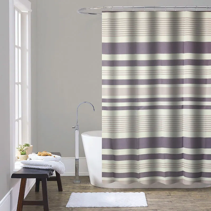 Занавеска для душа из 100 полиэстера с принтом с повторяющимся дизайном, размером 180x200мм.brКомплектация: Металлические люверсы-12шт., свинцовый утяжелитель, белые кольца-12 шт. в блистерной упаковке.br Рекомендации по уходу: деликатная стирка при температуре не более 30 градусов, сушка в естественных условиях, не гладить и не отбеливать.br После стирки можно замочить в теплой соленой воде для исключения разводов от порошка.br Преимущества: эстетичный внешний вид, износостойкость, приятная на ощупь, создает комфорт и уют, подходит к любому типу карнизовbrbr# занавеска для ванны # штора