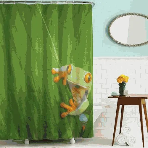 Шторка для ванной тканевая 180х200см "Лягушка" MELODIA MZ-51 - это водонепроницаемая занавеска для ванной комнаты с 12 люверсами из нержавеющей стали и с утяжеляющей лентой, не позволяющей занавеске мяться. Упакована в мешок с ручками в цвет шторы. Высота шторки 200см, ширина шторки 180см. Стирка при температуре до +40° С.brbr# занавеска для ванны # штора # мелодия