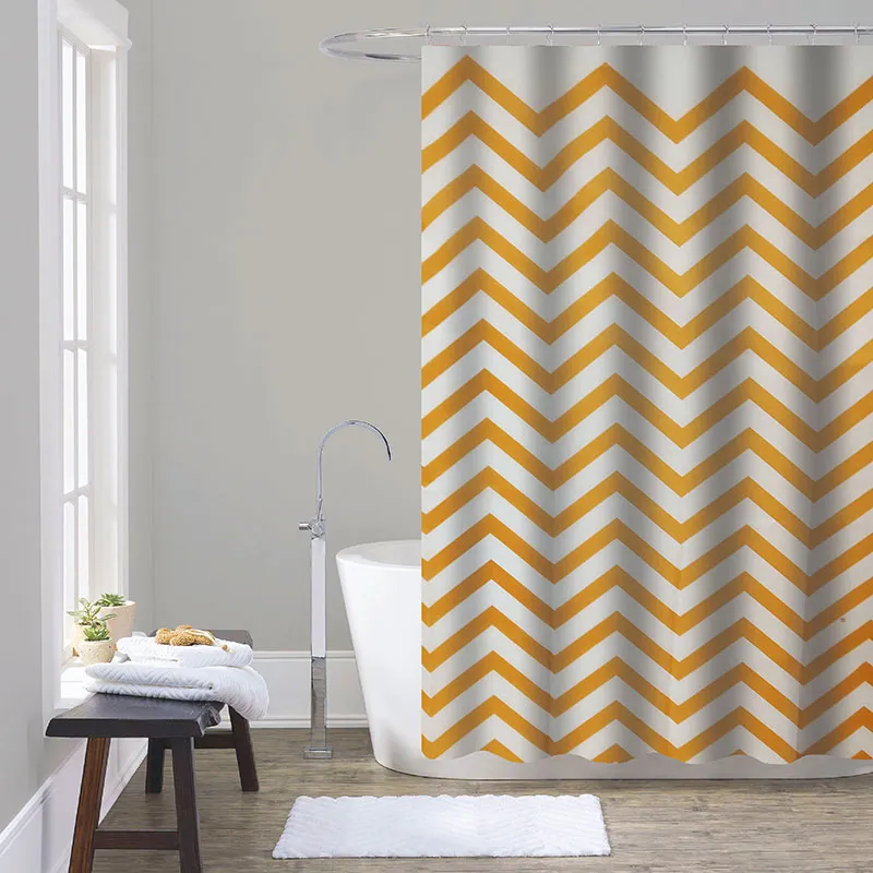 Занавеска для душа из 100 полиэстера с принтом с повторяющимся дизайном, размером 180x200мм.brКомплектация: Металлические люверсы-12шт., свинцовый утяжелитель, белые кольца-12 шт. в блистерной упаковке.br Рекомендации по уходу: деликатная стирка при температуре не более 30 градусов, сушка в естественных условиях, не гладить и не отбеливать.br После стирки можно замочить в теплой соленой воде для исключения разводов от порошка.br Преимущества: эстетичный внешний вид, износостойкость, приятная на ощупь, создает комфорт и уют, подходит к любому типу карнизовbrbr# занавеска для ванны # штора