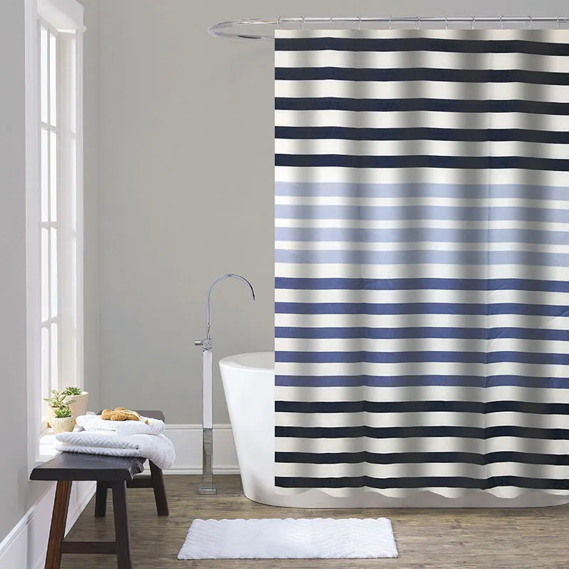 Занавеска для душа из 100 полиэстера с принтом с повторяющимся дизайном, размером 180x200мм.brКомплектация: Металлические люверсы-12шт., свинцовый утяжелитель, белые кольца-12 шт. в блистерной упаковке.br Рекомендации по уходу: деликатная стирка при температуре не более 30 градусов, сушка в естественных условиях, не гладить и не отбеливать.br После стирки можно замочить в теплой соленой воде для исключения разводов от порошка.br Преимущества: эстетичный внешний вид, износостойкость, приятная на ощупь, создает комфорт и уют, подходит к любому типу карнизовbrbr# занавеска для ванны # штора