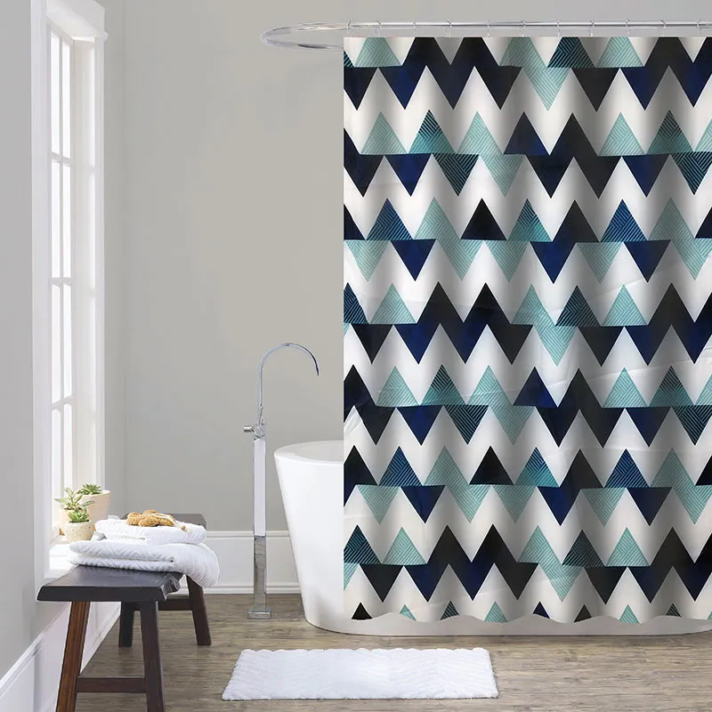 Занавеска для душа из 100 полиэстера с принтом с повторяющимся дизайном, размером 180x200мм.brКомплектация: Металлические люверсы-12шт., свинцовый утяжелитель, белые кольца-12 шт. в блистерной упаковке.br Рекомендации по уходу: деликатная стирка при температуре не более 30 градусов, сушка в естественных условиях, не гладить и не отбеливать.br После стирки можно замочить в теплой соленой воде для исключения разводов от порошка.br Преимущества: эстетичный внешний вид, износостойкость, приятная на ощупь, создает комфорт и уют, подходит к любому типу карнизовbrbr# занавеска для ванны # штора