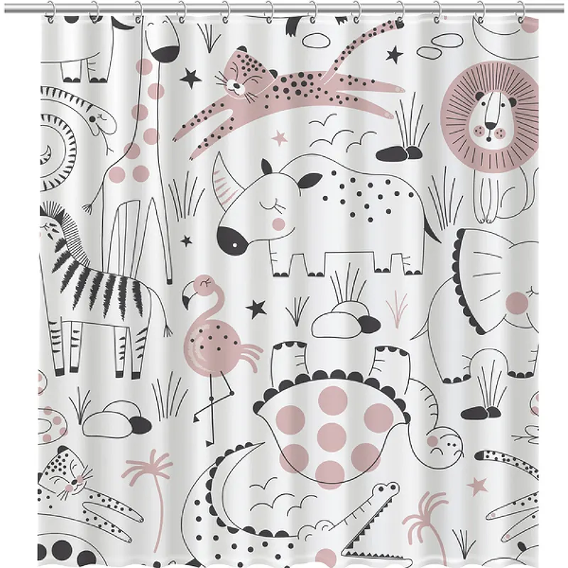 Шторка для ванны Fixsen Design Africa FX-2510 180х200 Белая с животными