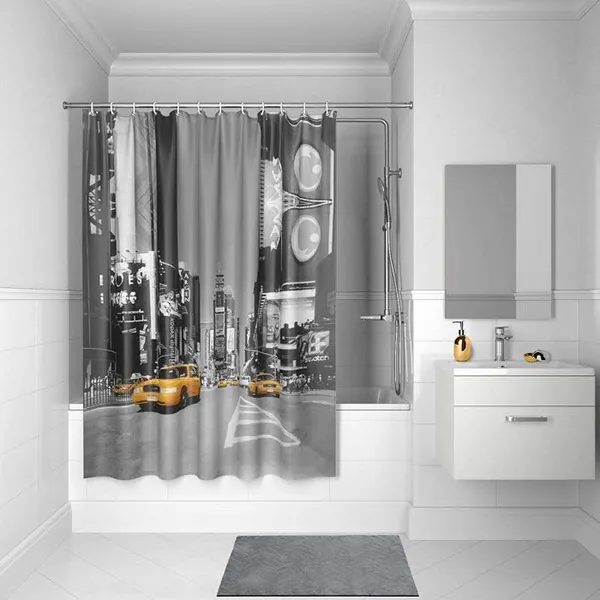 - С кольцами в комплекте: Удобная установка шторки благодаря 12 белым кольцам формы "С", входящим в комплект.