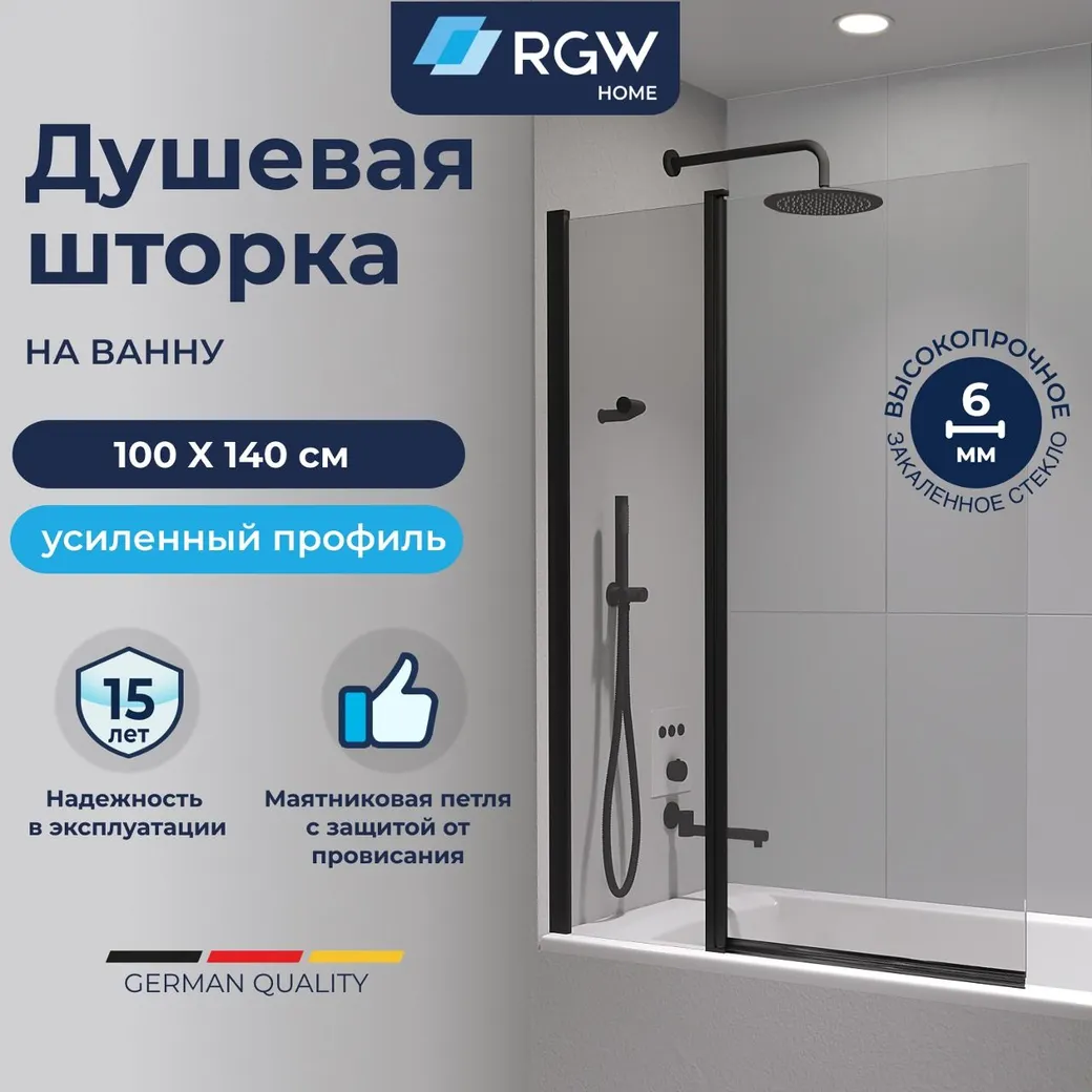 Шторка на ванну 100*140 RGW SC-11-B Чёрный/Прозрачное/6 мм (99-100 Easy)