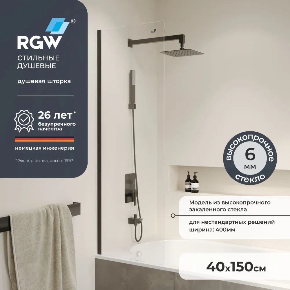 Шторка на ванну 40*150 RGW SC-056-B Чёрный/Прозрачное/6 мм (Easy)