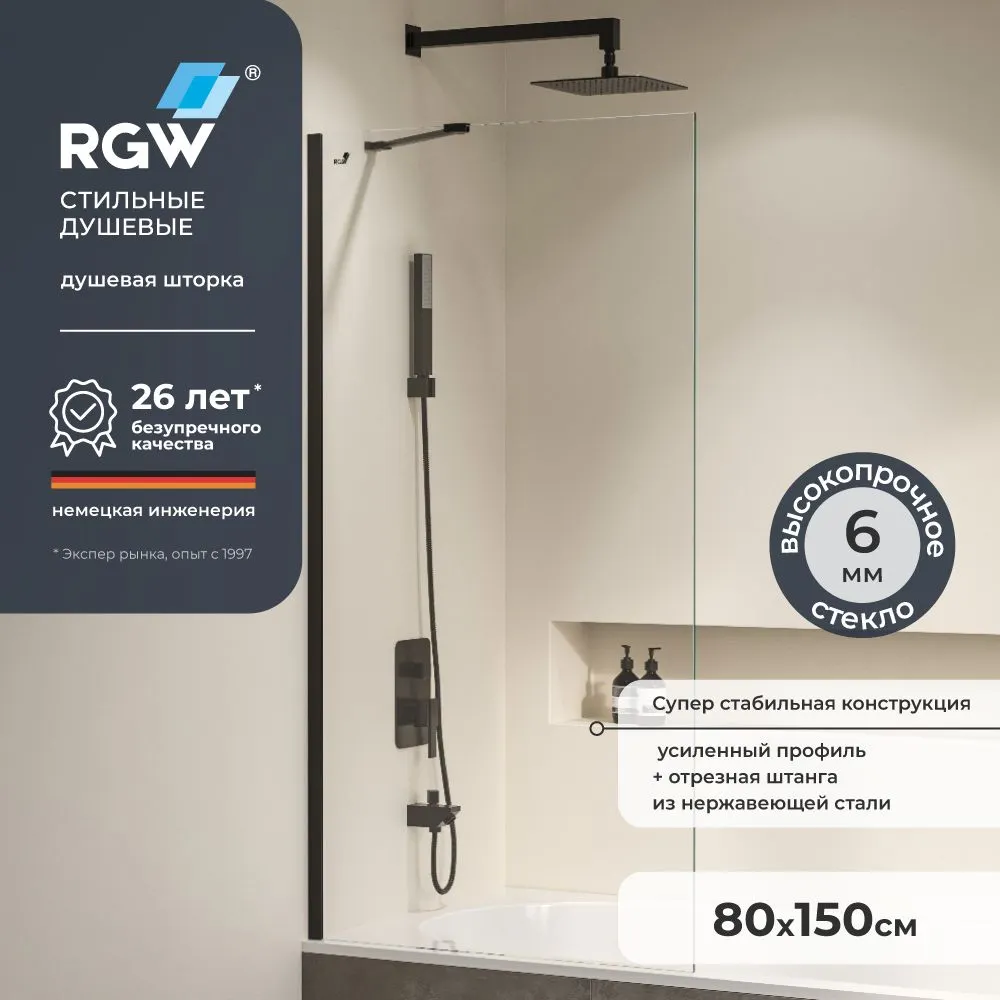 Шторка на ванну 80*150 RGW SC-150-B Чёрный/Прозрачное/6 мм (Easy)
