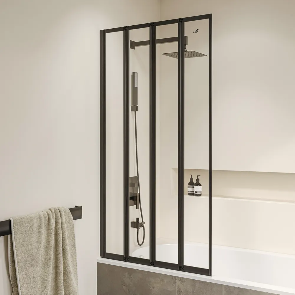 - Элегантный дизайн: Черный профиль и прозрачное стекло гармонично вписываются в любой интерьер ванной комнаты.