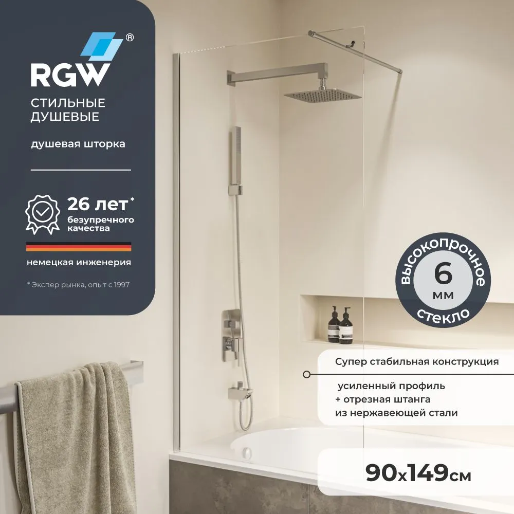 Шторка на ванну 90*150 RGW SC-050 Хром/Прозрачное/6 мм (Easy)
