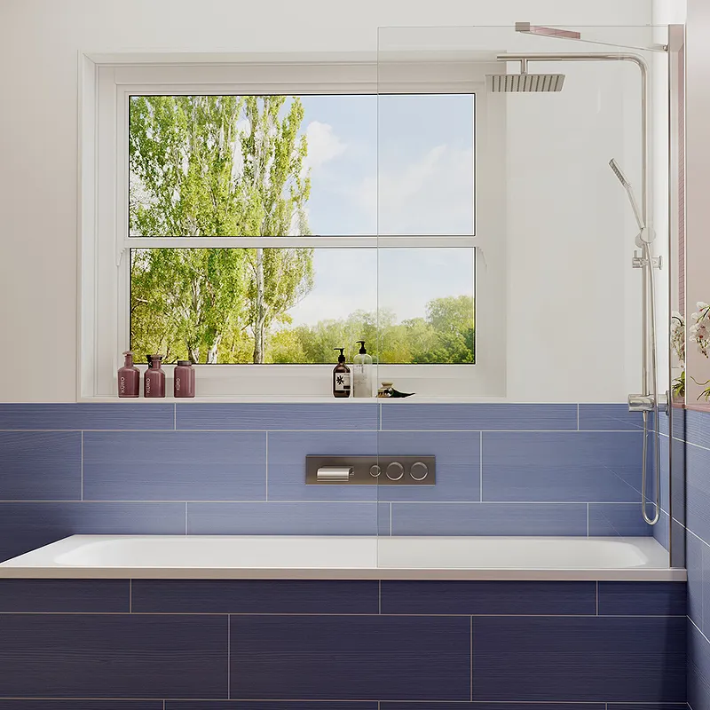 - Эстетичный дизайн: Хромированный профиль и стекло CrystalPure придают ванной комнате современный и стильный вид.