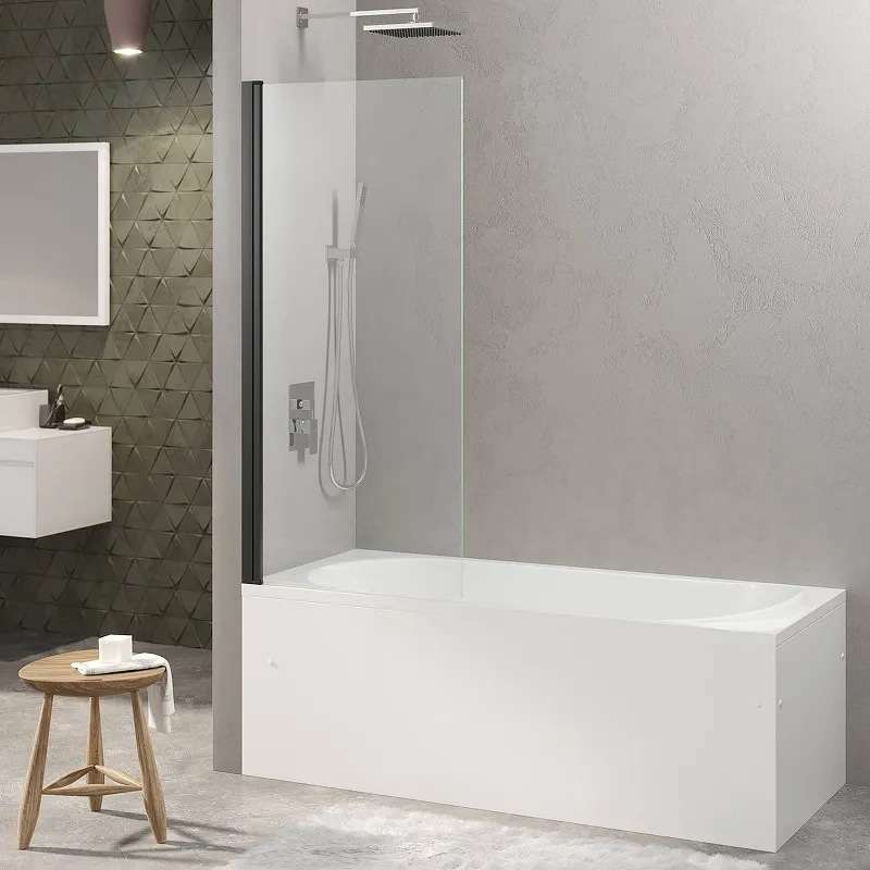 Шторка на ванну Berges River S Black 80х145 065011 профиль Черный матовый стекло прозрачное