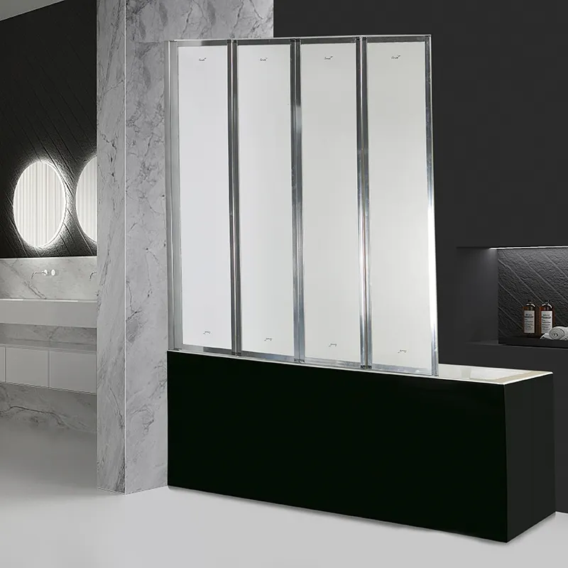 - Шторка на ванну с профилем цвета хром и матовым стеклом.