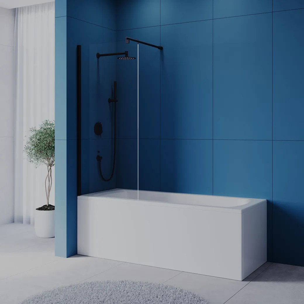 - Эффектный дизайн: Чёрный профиль шторки на ванну создаёт современный и стильный вид.