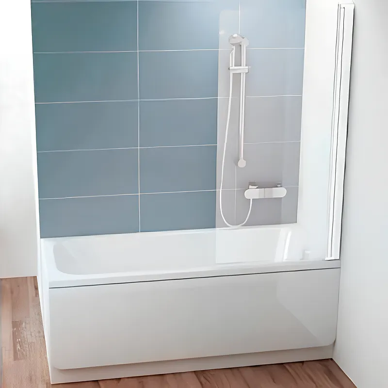 - Современный дизайн шторки на ванну: стильный белый профиль и прозрачное стекло создают эффект лёгкости и пространства.