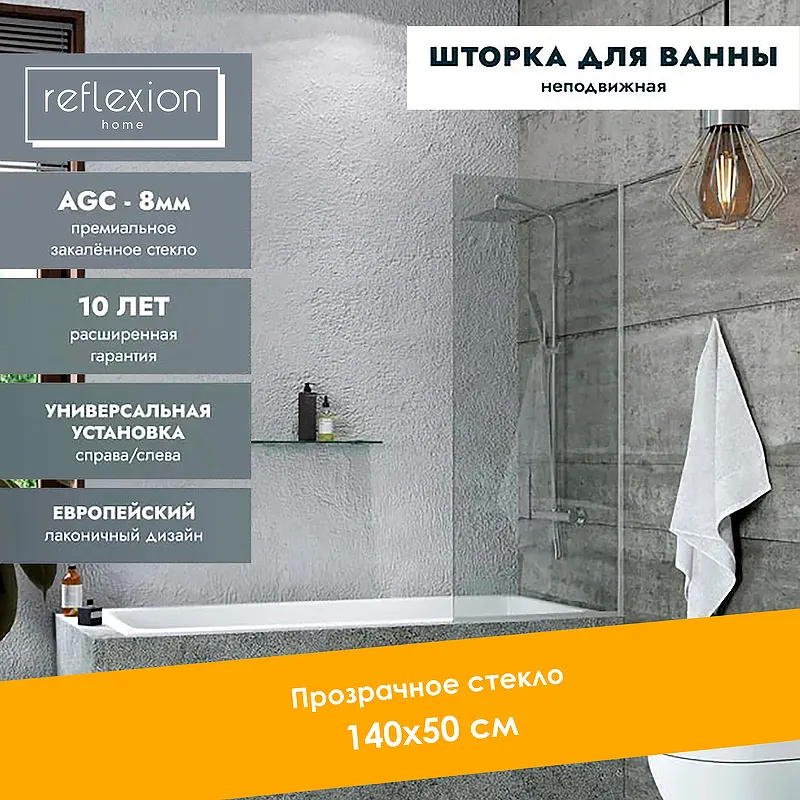 Шторка на ванну Reflection 50х140 RX14050CСR-07 — идеальное решение для создания современного интерьера в ванной комнате. С профилем из алюминия и прозрачными стеклами, данная шторка не только функциональна, но и стильна. Благодаря универсальной ориентации, она подходит для монтажа на любую ванну, обеспечивая удобство и комфорт.
