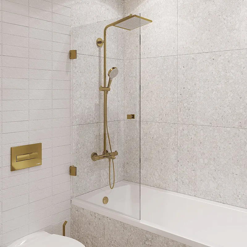 Преимущества шторки на ванну STWORKI Ольборг 70 профиль Золото стекло прозрачное