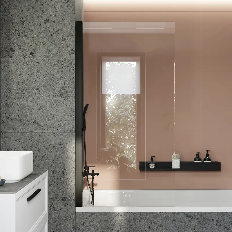 - Профиль черный матовый: Черный матовый профиль из алюминия придаёт изделию элегантный и современный вид, который идеально впишется в любой интерьер ванной комнаты.