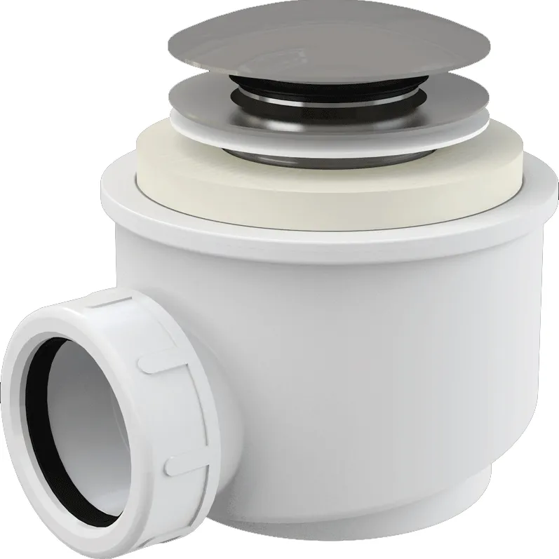 Сифон для душевого поддона Alcaplast A465-50 изготавливается из высококачественных материалов.Для слива воды из душевых поддонов.Для душевых поддонов со сливным отверстием 50 мм.Закрытие сливного клапана системой CLICK/CLACK.Самочистящаяся конструкция сифона.Высота монтажа 79 мм.Сток можно подключить с помощью колена A52.Материал: полипропилен, устойчивый к термическим и химическим воздействиям.Технические характеристики:Гидрозатвор: 50 mm.Сток воды: 48,6 l/min.Сопротивление гидрозатвора против давления: 588 Pa.Термическая устойчивость: 95 градусов.В комплекте поставки:Корпус сифона.Хромированный донный клапан и слив.Монтажный комплект.