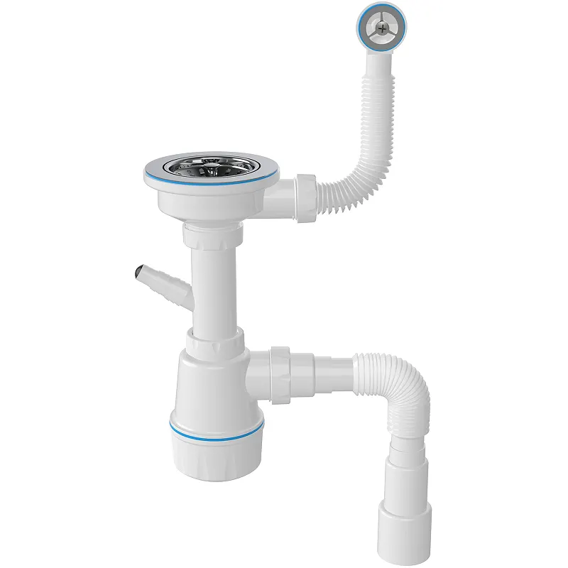 Сифон для кухонной мойки Nova 1046.Характеристики: Цвет: белый. Материал: полипропилен. Перелив круглый. Выпуск: 3 1/2. Пластиковый винт длиной 45 мм. Регулируемая высота от 210 до 280 мм. Длина гофры к переливу: 250 мм. Отдельный отвод для стиральной машины. Сетчатый выпуск-чашка из нержавеющей стали диаметром 114 мм. Универсальный выход в канализацию гибкая труба 1 1/2 диаметром 40/50. В комплекте поставки: Сифон для кухонной мойки.