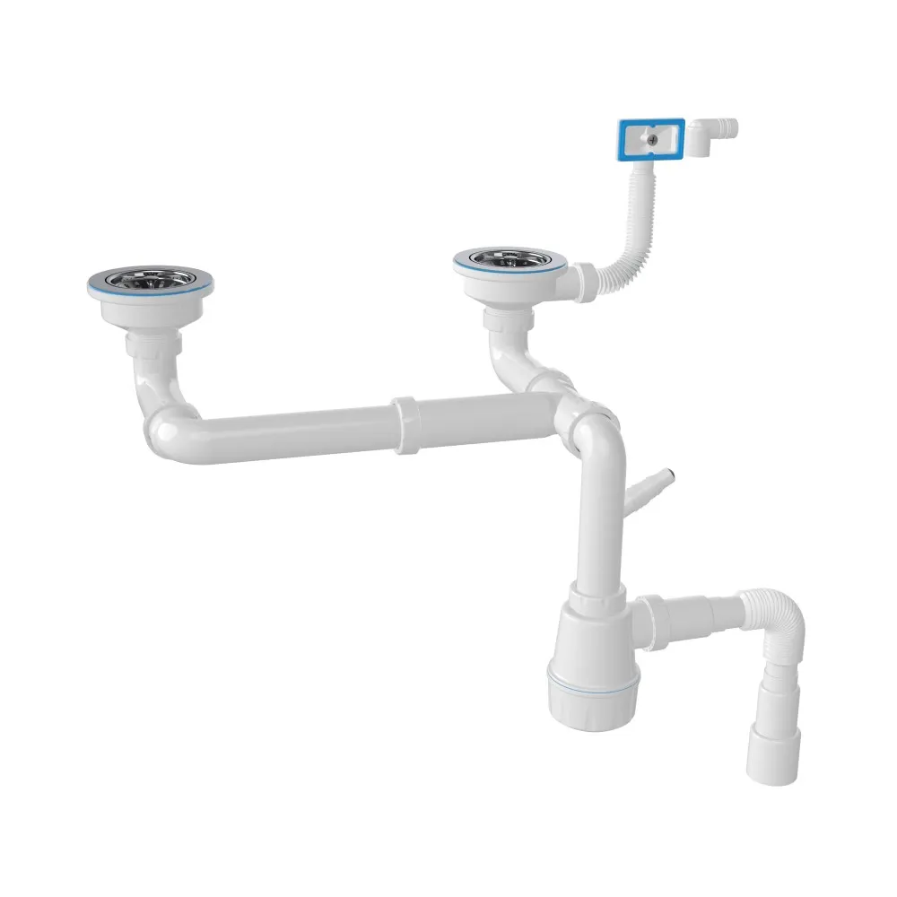 Сифон для кухонной мойки Nova , для двойной мойки, с отводом для стиральной машины арт-NV1197
