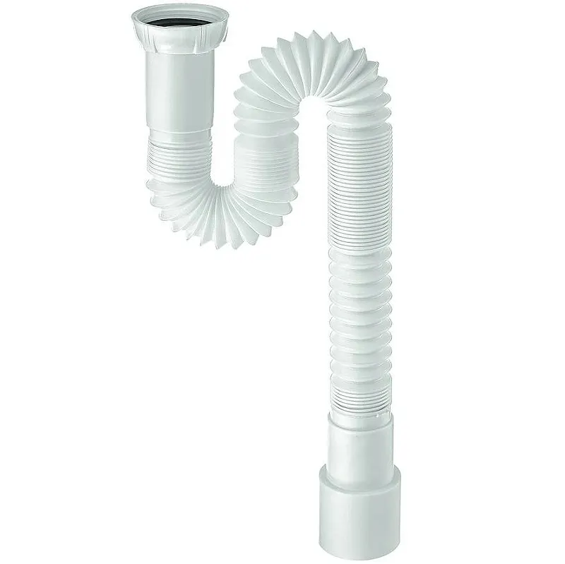 Сифон Wirquin 30717995 с гофротрубой без выпуска.Технические характеристики: Материал: пластик. Вид затвора: гидрозатвор. Пропускная способность: 54.5 л/мин. Длина гофротрубы: 120 см. Подключение к канализационной трубе 4/5 см. В комплекте поставки:Сифон