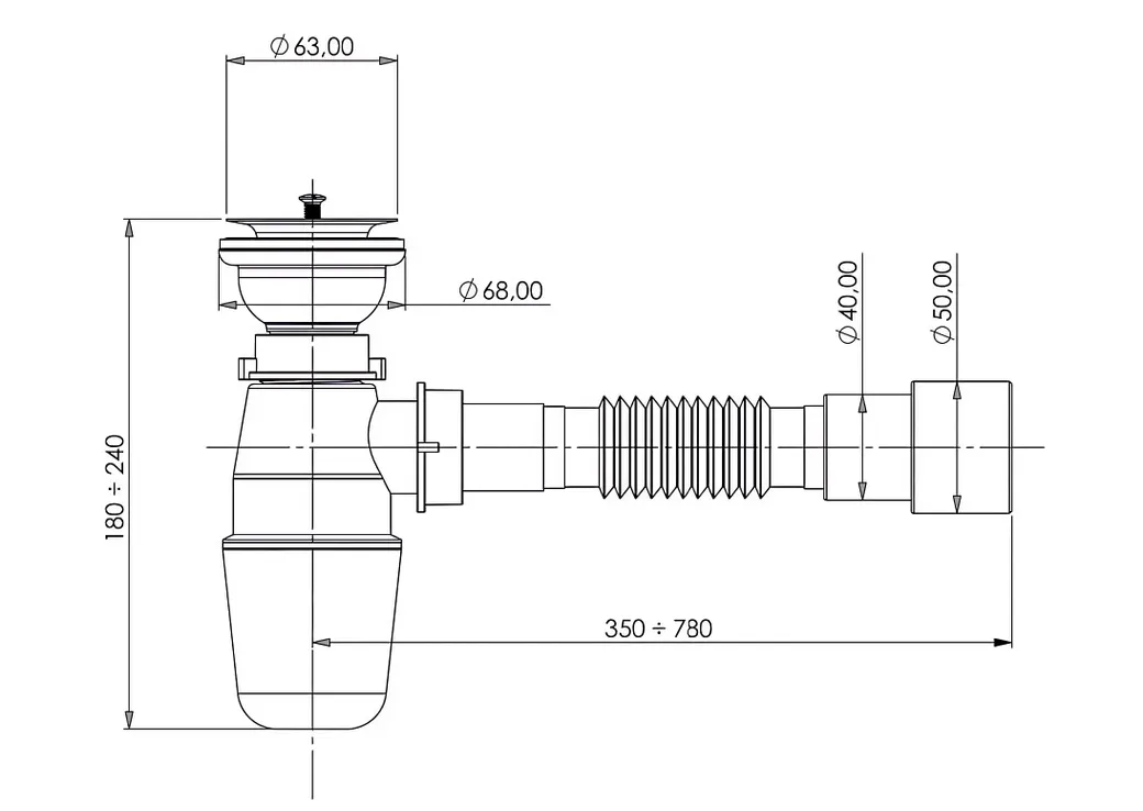 Сифон для раковины/умывальника бутылочного типа Стильный и функциональный сифон для раковины или умывальника обеспечивает надежный слив воды и защищает от засоров и неприятных запахов. Бутылочная конструкция с глубоким отстойником предотвращает попадание мусора в канализацию, а герметичные соединения исключают протечки.Основные характеристики:? Тип: бутылочный (с отстойником)? Габариты: 180 ? 68 ? 385/765 мм (регулируемая высота)? Регулировка по высоте: до 6 см – удобная подстройка под разные модели раковин? Диаметр слива: 32 мм (стандарт для большинства умывальников)? Подключение к канализации: 40/50 мм (универсальный переходник в комплекте)? Решётка: из нержавеющей стали – долговечность и эстетичный вид? Материал корпуса: прочный пластик, устойчивый к коррозии и механическим нагрузкамПреимущества:? Простота монтажа – легко устанавливается без специального инструмента? Герметичность – надежные уплотнители предотвращают протечки? Лёгкий уход – отстойник легко разбирается для очистки? Современный дизайн – подходит для любых интерьеров ванной или кухниКомплектация:- Сифон бутылочного типа - Решётка из нержавеющей стали - Уплотнительные прокладки и крепежные элементы - Идеальное решение для подключения раковины с удобной регулировкой и долгим сроком службы!