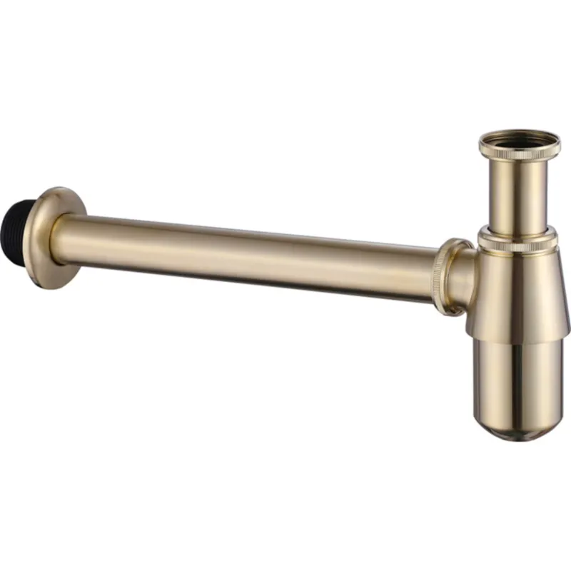 - Эстетичный дизайн: Золотое матовое покрытие делает данный сифон стильным акцентом в интерьере вашей ванной комнаты.