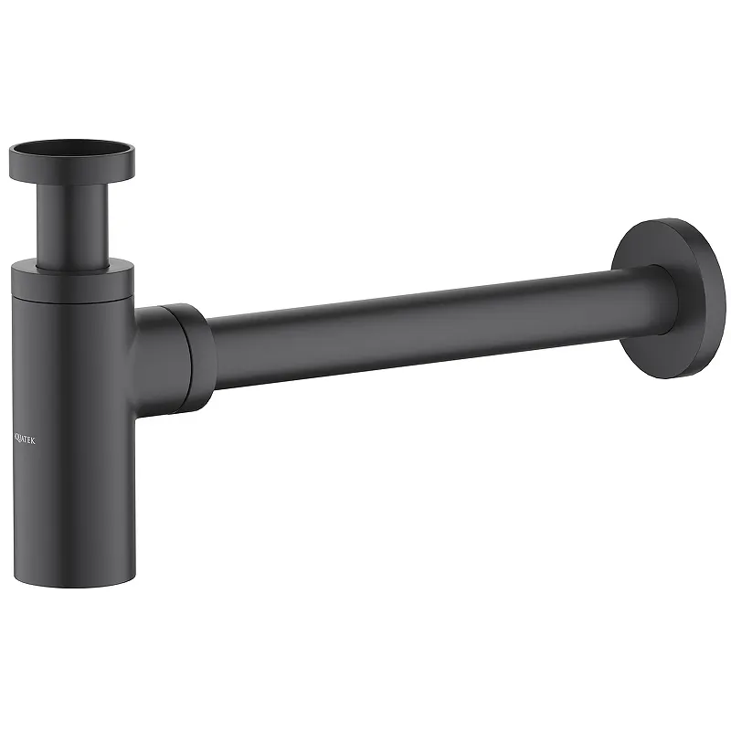 Сифон для раковины Aquatek AQ6012MB.Характеристики: Цвет: черный матовый. Материал сифона: латунь. Материал трубы: нержавеющая сталь. Диаметр слива: 32 мм. Сливной диаметр: G 1 1/4. Подключение к канализационной трубе: 32 мм. Вид сифона: бутылочный. Направление выпуска: боковое (горизонтальное). Регулировочное расстояние: 40-130 мм. В комплекте поставки: Сифон для раковины.