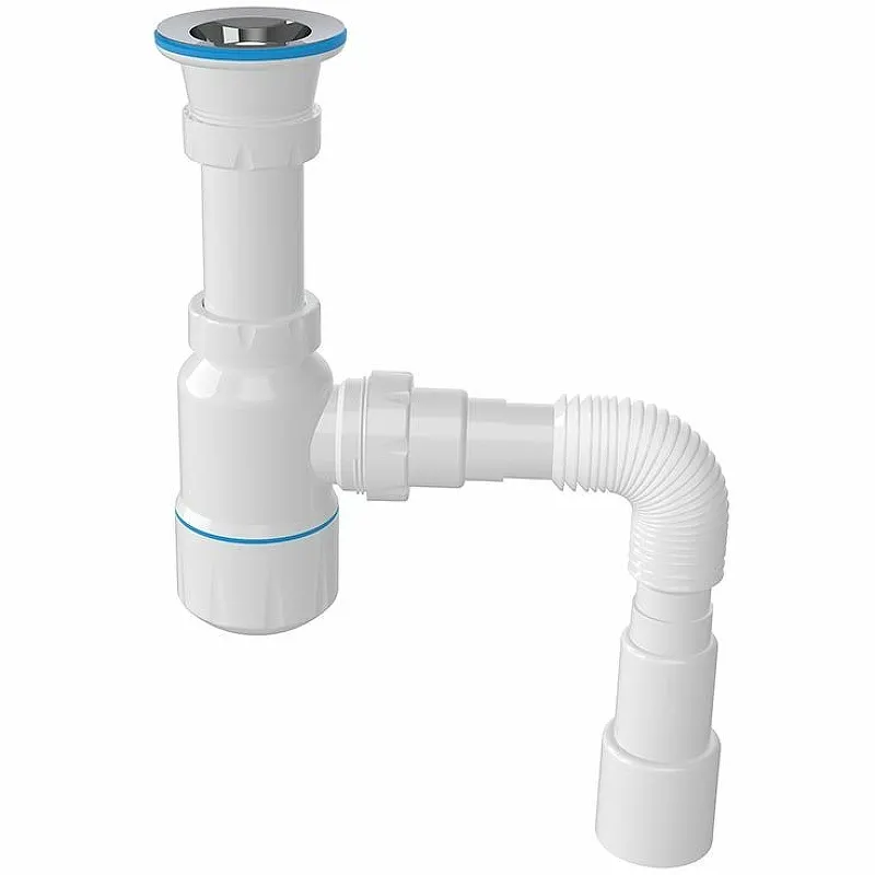 - Удобная установка: Сифон для раковины с гофротрубой легко монтируется благодаря универсальному выходу в канализацию диаметром 40/50 мм.
