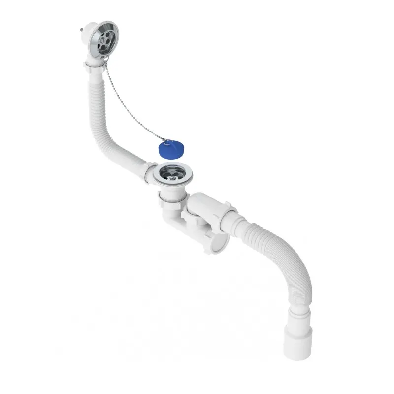 - Универсальность монтажа: Сифон для ванны 1 1/2"x40 легко устанавливается и подходит для стандартных ванн, обеспечивая легкость в обслуживании.