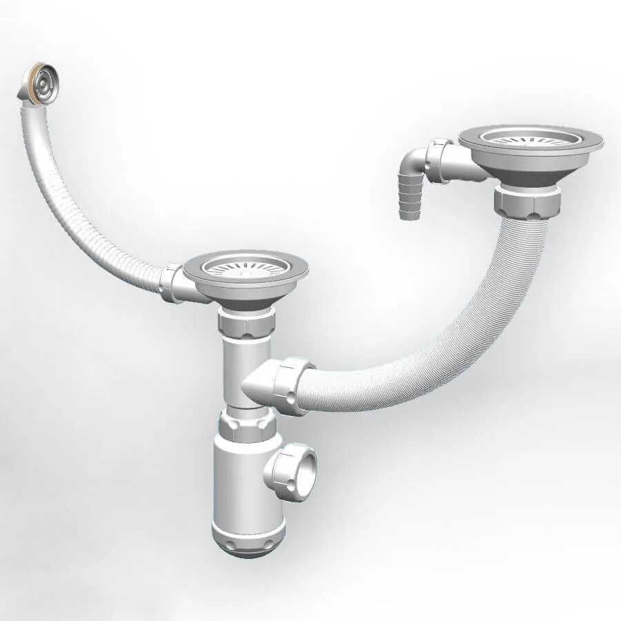 Сифон предназначен для моек с двумя чашами со сливом 90 мм.