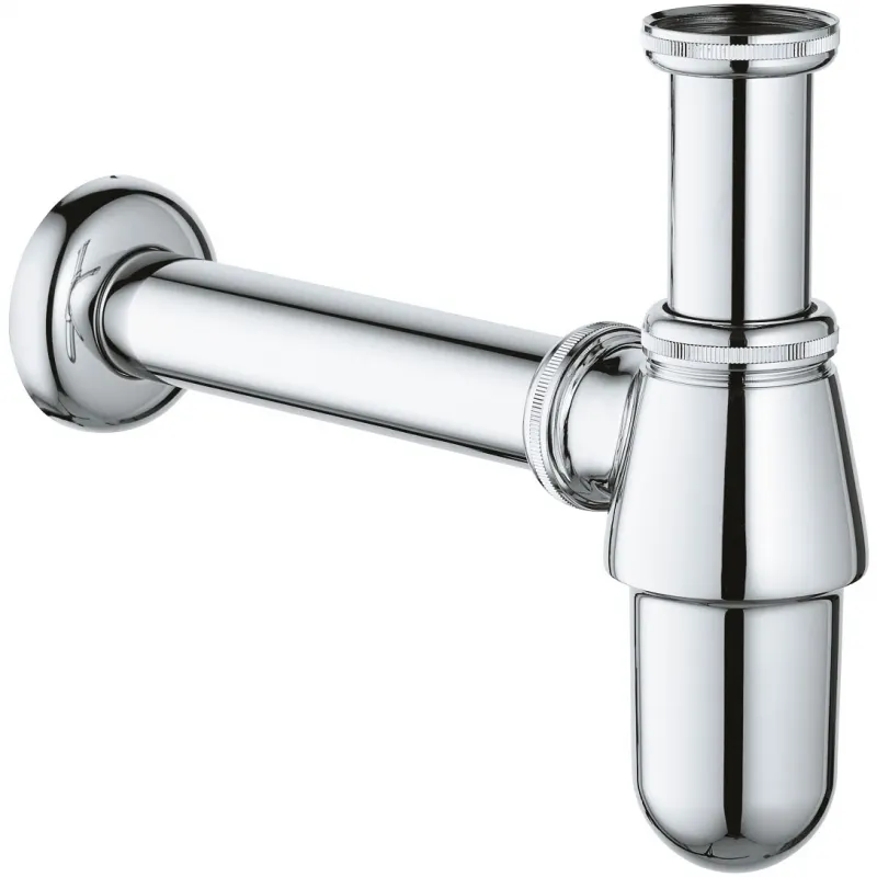 Бутылочный сифон для раковины Grohe 28920000. Стильный и компактный сифон гармонично смотрится с различными предметами интерьера в современном стиле.Характеристики:Материал: металл.Цвет: хром.Фиксированная погружная трубка.Настенное подключение с надвижной розеткой.Покрытие Grohe StarLight гарантирует длительную износостойкость без царапин с сияющей чистотой.Простой монтаж, не требующий профессиональных навыков и знаний.В комплекте поставки: сифон.
