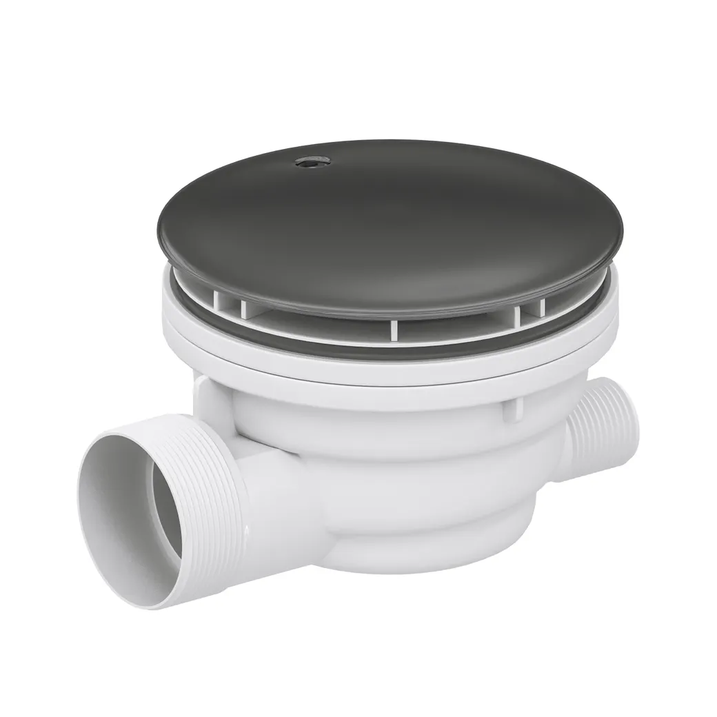 Сифон Velplex QYD-01 со съемным гидрозатвором для душевых поддонов. Верхняя крышка сифона цвета графит.