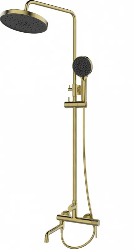 3-х режимная душевая система, телескопическая штанга (1150-1750), поворотный излив. Корпус смесителя - латунь. Надёжный керамический картридж. Излив - нержавеющая сталь (# 304). Верхний душ и душевая лейка из ABS. Душевой шланг: PVD. Длина шланга - 1,5 м.