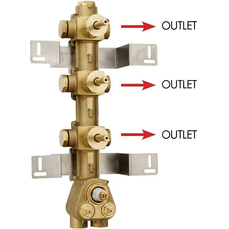Скрытая часть для смесителя Bossini 3 Outlets Z030202000 с термостатом HighFlow на 3 потребителя.Технические характеристики: Материал: латунь. Встраиваемая система. Установка: вертикально/горизонтально. Стандарт подключения: G 3/4. Давление: 2-3 бар. Количество выходов: 3 выхода. Температура горячей воды: до 55 градусов. В комплекте поставки: внутренняя часть смесителя.