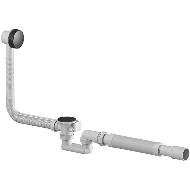 Слив-перелив для ванны AM.PM W90A-000-OflB полуавтомат.Характеристики: Цвет: черный. Материал: ABS-пластик. Диаметр подключения к канализационной трубе: 5 см. Для слива диаметром 5.2 см. Гидрозатвор с поворотным коленом. Длина гофры: 600 мм. В комплекте поставки: Слив-перелив.