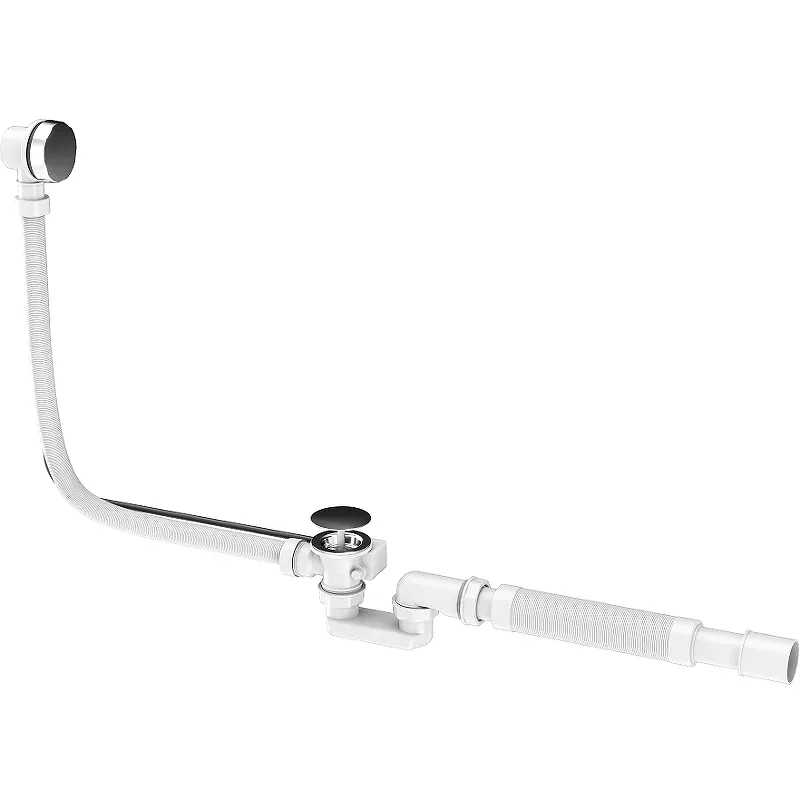 Слив-перелив для ванны AM.PM W90A-1000-OFL полуавтомат.Характеристики: Цвет: хром. Материал: нержавеющая сталь, пластик. Диаметр подключения к канализационной трубе: 5 см. Для слива диаметром 5.2 см. Гидрозатвор с поворотным коленом. Длина гофры: 1000 мм. В комплекте поставки: Слив-перелив.