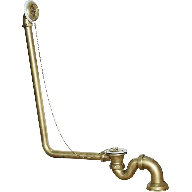 Слив-перелив Эстет Wirquin ФР-00000818 с пробкой на цепочке.Характеристики: Цвет: бронза. Материал: латунь. Вид сифона: трубный. Диаметр слива: 5 см. Направление выпуска: горизонтальное. Диаметр подключения: 50 мм. В комплекте поставки: слив-перелив.
