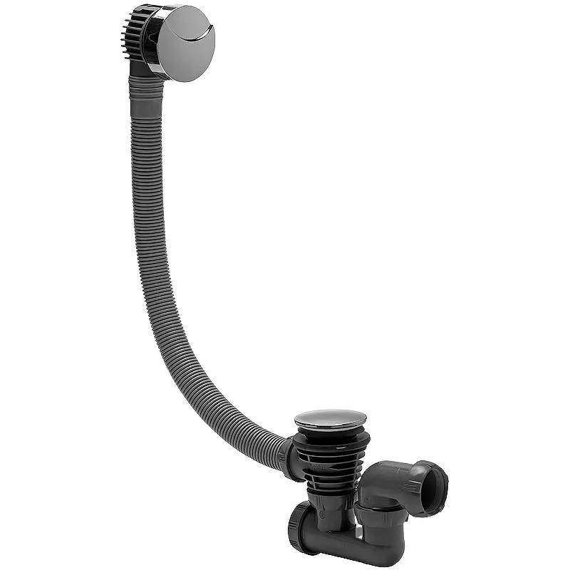 Слив-перелив для ванны Jacob Delafon E6D159-CP полуавтоматический.Характеристики: Цвет: хром, черный. Материал: пластик, металл. Длина гофрированной трубы перелива: 70 см. Полуавтомат (с тросиком). В комплекте поставки: Слив-перелив.