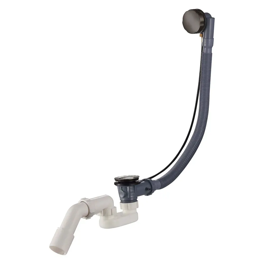 Слив-перелив 1 1/2"х40/50, с переливом и п/автоматическим сливом для ванн и глубоких душевых поддонов. Конструкция сифона позволяет прочищать сифон, не демонтируя его. С отводом в канализацию. • Слив-перелив система с функцией наполнения ванны. • Клапан управления из латуни. • Вода не течет по стенке ванны, что предотвращает появление налета. • Гидрозатвор с вращающимся коленом. • Закрытие сливного клапана с помощью троса Боудена. Сифон для ванны Сделан из высокопрочного пластика, который не боится экстремально высоких и низких температур, а также воздействия агрессивной бытовой химии. Подходит для большинства современных моделей ванн толщиной до 10 мм. Пробка слива и заглушка перелива хромированного цвета придадут вашей ванне элегантный и современный вид.