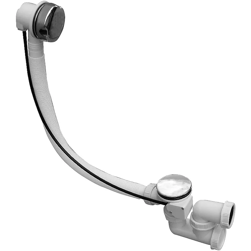 Слив-перелив Rav Slezak MD0471/100N полуавтомат.Характеристики: Цвет: хром. Материал: металл, пластик. Длина: 100 см. Гибкий шланг системы перелива. Закрытие сливного клапана с помощью троса. Мокрый гидрозатвор с вращающимся коленом. Повышенная устойчивость к механическим повреждениям. Гидрозатвор: 50 мм. Скорость перелива: 42 л/мин. Сток воды: 51.6 л/мин. Термическая устойчивость: 95 градусов. Сопротивление гидрозатвора против давления: 588 Pa. В комплекте поставки: Слив-перелив.