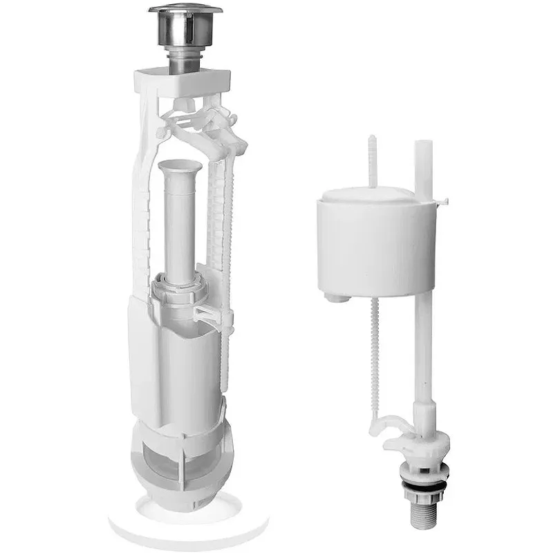 Цвет кнопки: хром. Материал: пластик. Кнопка металлизированная. Сливной клапан: однокнопочный с системой Старт-Стоп. Наполнительный клапан: нижний. Подходит для бачков высотой: 278-409 мм. Штуцер: полипластик G 1/2. Бесшумное наполнение. В комплекте поставки: Сливная арматура. Комплект прокладок.