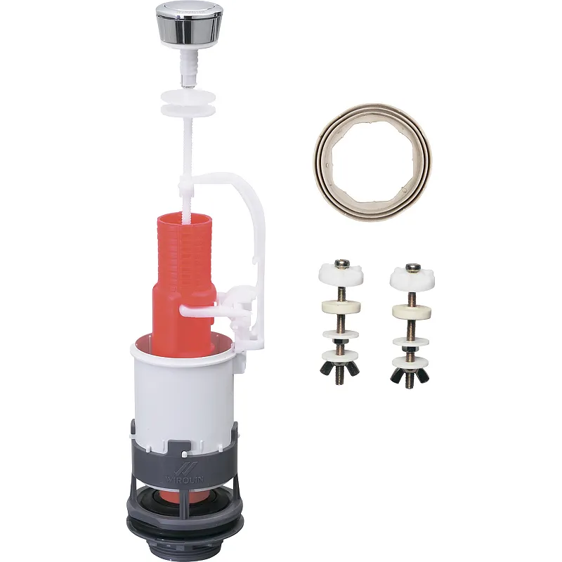 Сливная арматура Wirquin MP 10717557.Система механизма позволяет компенсировать расстояние между несцентрованными отверстиями крышки и бачка.Легко устанавливается и не нуждается в регулировке..Механизм не держит крышку бачка, что позволяет поднимать крышку без разборки механизма.Универсальна: подходит для любого бачка.Характеристики: