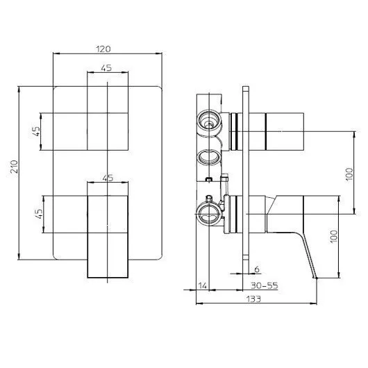 Смеситель Bossini Aki Z00741.073 для ванны и душа встраиваемый внешняя часть на 2-5 потребителей цвет черный матовый