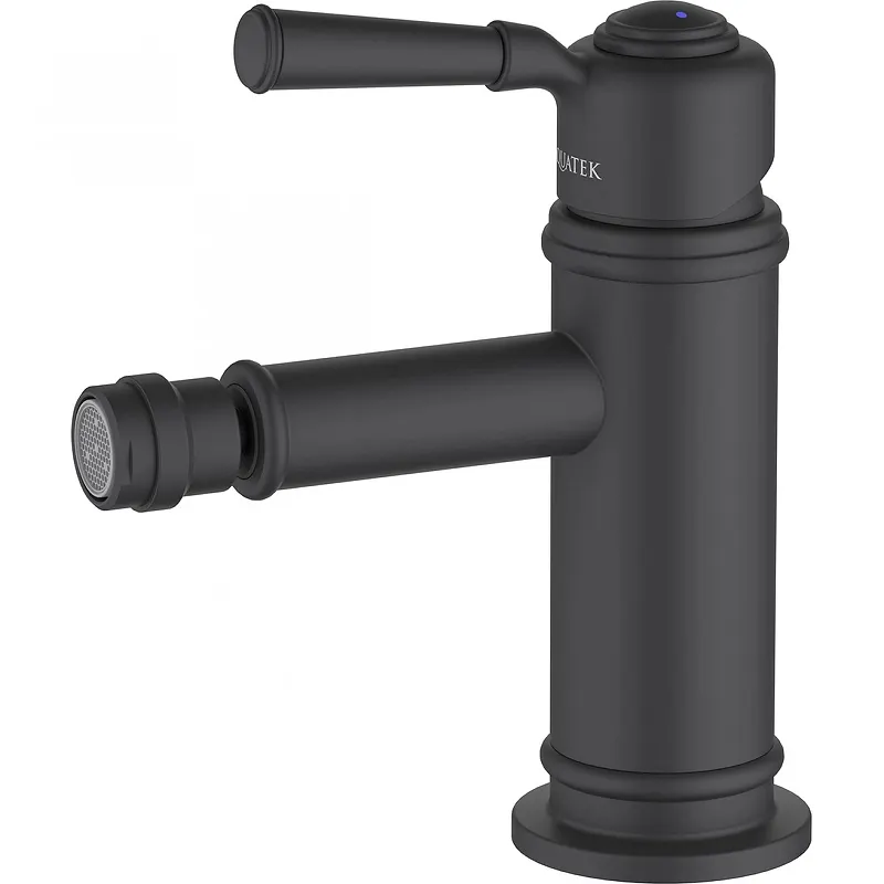 Смеситель для биде Aquatek Классик AQ1518MB.Характеристики: Цвет: черный матовый. Материал: латунь. Управление: однорычажное, система регулировки силы струи и температуры воды. Механизм: керамический картридж Citec 35 мм. Излив: фиксированный. Аэратор Neoperl. Легкая очистка аэратора. Стандарт подводки: G 1/2. Тип резьбового соединения: M10. Тип подводки: гибкая, длиной 600 мм. Отверстия для монтажа: 1. Монтаж: на биде. В комплекте поставки: Смеситель для биде. Гибкая подводка. Монтажный комплект.