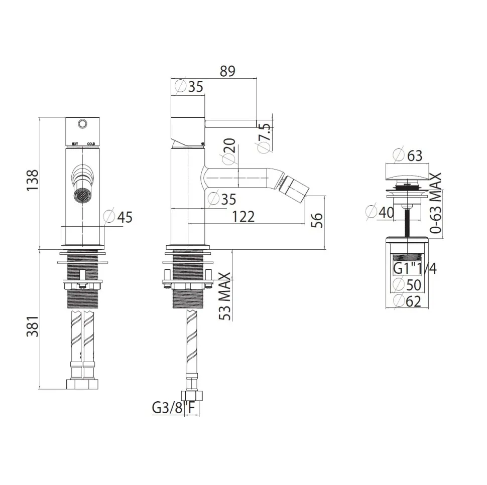 Смеситель для биде Bossini Teo Z00702.021 с донным клапаном Click-Clack цвет золото