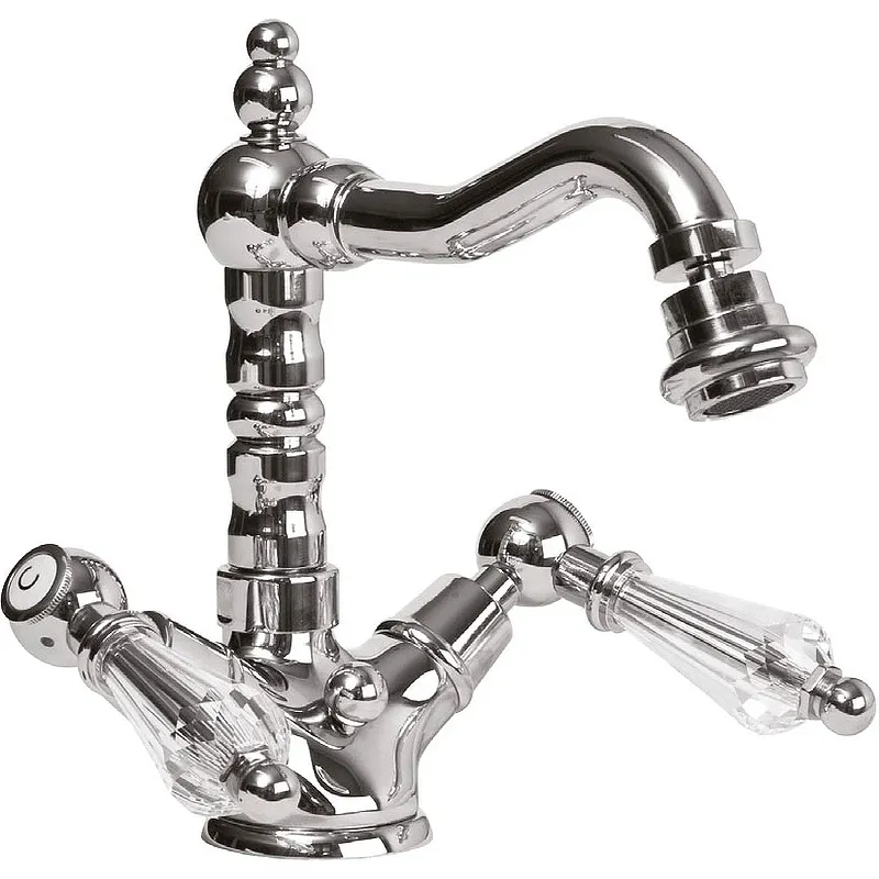 Двухвентильный смеситель для биде Cezares Diamond DIAMOND-BS2-01-Sw с поворотным изливом и ручками Swarovski.Смелое украшение в свете модных тенденций: сверкающие кристаллы Swarovski на каплевидных ручках дополнены утонченными классическими линиями корпуса смесителя. Этот образец безупречного мастерства несомненно создаст изысканный акцент в интерьере.Характеристики: Цвет: хром. Материал: латунь. Ручки: кристаллы Swarovski. Управление: двухвентильное. Тип подводки - гибкая. Стандарт подводки: G 1/2. Донный клапан: G 1 1/4. Механизм: керамический кран-букса. Отверстия для монтажа: 1 отверстия. Монтаж: на биде. Аэратор. С донным клапаном. Излив: поворотный. Рабочий интервал давления: 0.5-6 Атм. В комплекте поставки: смеситель.