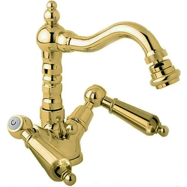 Смеситель для биде Cezares First BS2. Артикул: FIRST-BS2-03-M.Двухвентильный смеситель с поворотным изливом и аэратором, монтируемый в одно отверстие. Имеет долгий срок эксплуатации за счет качественных деталей, неприхотлив в уходе. Станет прекрасным дополнением ванной комнаты в классическом или ретро стиле.Характеристики:Изготовлен из высококачественной латуни с гладким покрытием, которое не теряет цвет со временем, устойчиво к царапинам и превосходно защищает от коррозии.Цвет корпуса: золото.Цвет ручек: золото.Длина излива: 15,5 см.Керамические кран-буксы - гарантия длительного срока службы.Рабочий интервал давления: 0,5 - 6 Атм.Донный клапан: G 1 1/4. Рычаг управления на корпусе смесителя.Стандарт подключения: G 1/2.В комплекте поставки: смеситель, донный клапан, гибкая подводка, крепления.