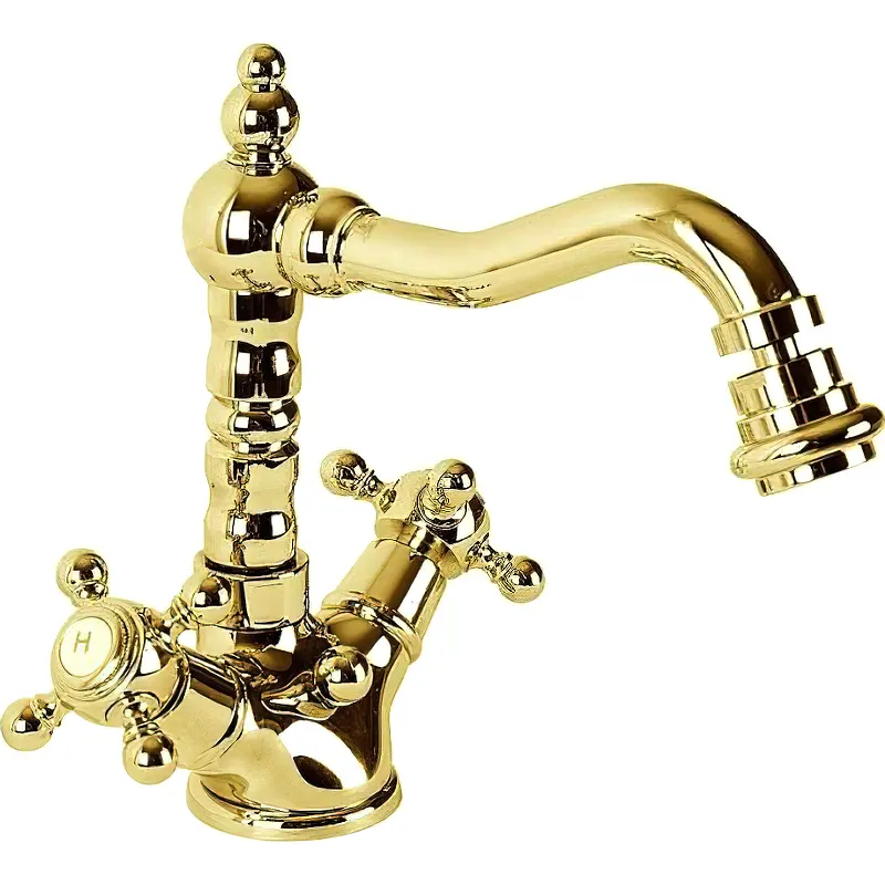 Смеситель для биде Cezares Golf-BS2-03/24.Характеристики: Цвет: золото 24 карат. Материал: латунь. Управление: вентильное. Удобные крестообразные вентили позволяют точно регулировать температуру и напор воды. Механизм: керамическая кран-букса. Фиксированный излив с аэратором. Тип подводки: гибкая G1/2. Отверстия для монтажа: 1 отверстие. Рабочий интервал давления: 0,5-6,0 Атм. В комплекте поставки: Смеситель. Донный клапан. Аэратор.